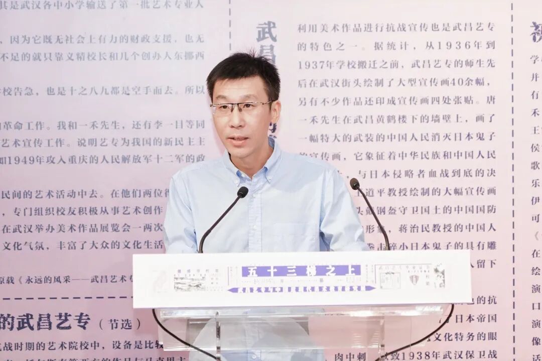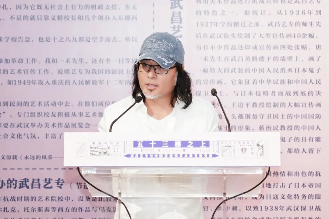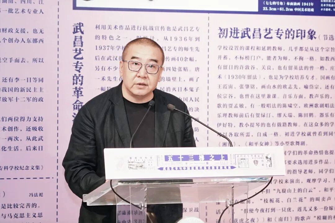 ▲武昌艺专师生后人代表、湖北美术学院实验艺术学院院长唐骁致辞