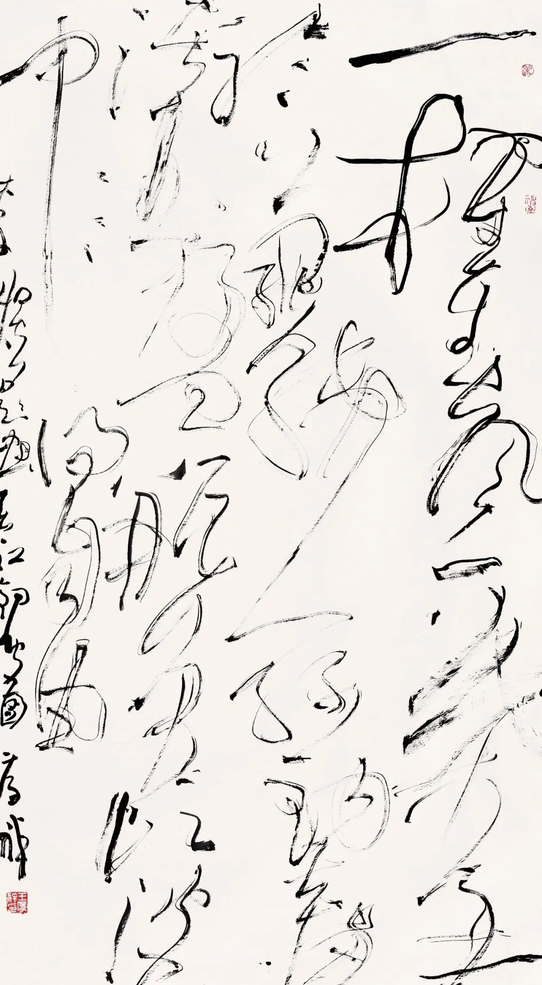 此次展览的作品全部为八尺以内,大家在有限的空间内各显其能、尽情发挥,激发出惊人的创造力。如胡传海在八尺之内所体现出的神逸,张学群在八尺之内所体现出的散逸,王春新在八尺之内所出体现的雅逸,王厚祥在八尺之内所体现出的纵逸,洪厚甜在八尺之内所体现出的拙逸,李远东在八尺之内所体现出奇逸,张纬东在八尺之内所体现出的韵逸,刘京闻在八尺之内所体现出的峭逸,王乃勇在八尺之内所体现出峻逸,林峰在八尺之内所体现出的畅逸。这些探索证明:尺寸从来不是艺术表达的枷锁,相反,有限的物理空间反而促使艺术家在精神维度上的无限拓展。